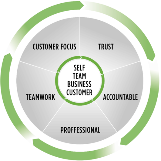 Customer Focus - we are focused on the customer, embracing new ideas that lead the way to better business.